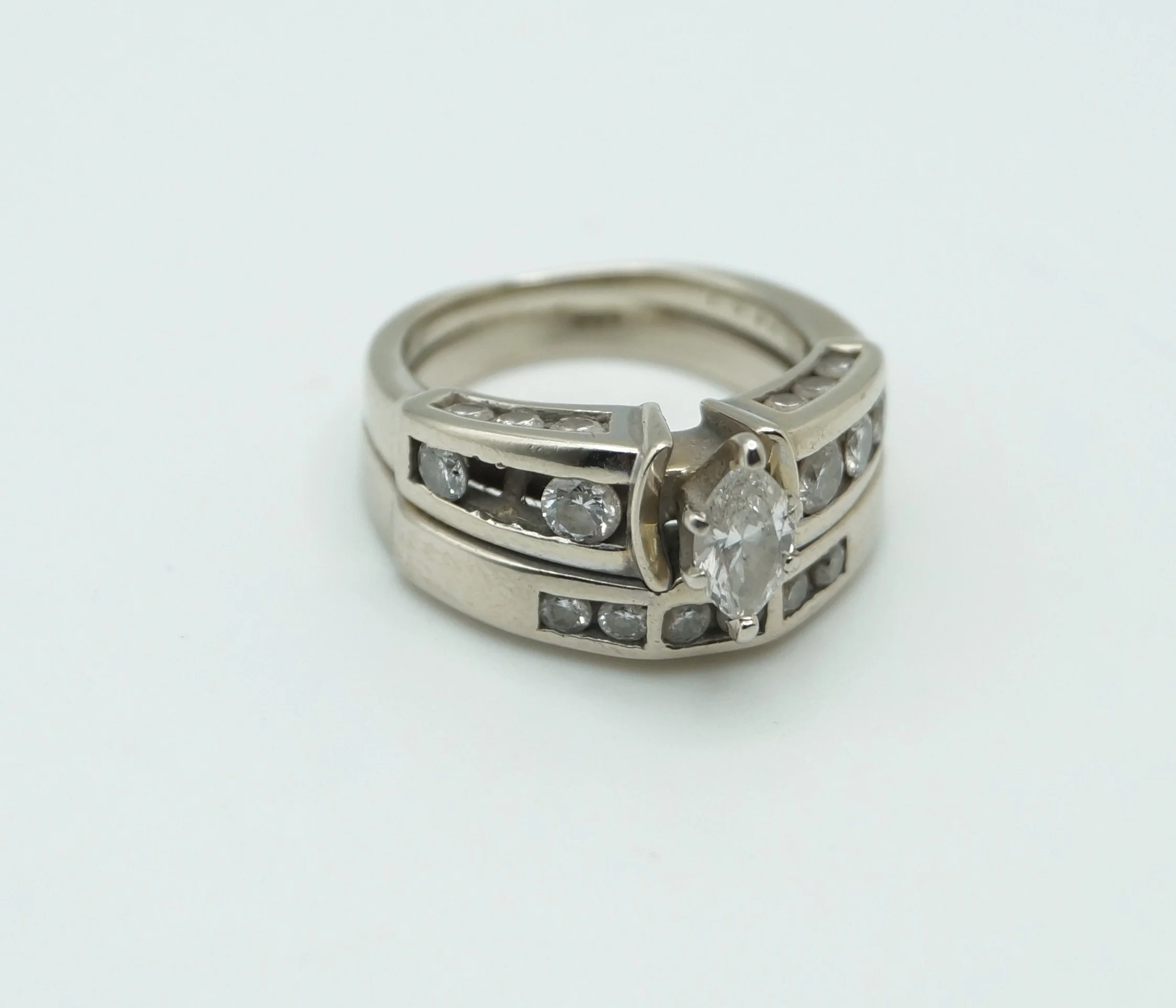 This customer was looking for a fresh look for her wedding ring and also wanted to use some of her jewelry she had and was no longer wearing. The final product turned out beautiful!